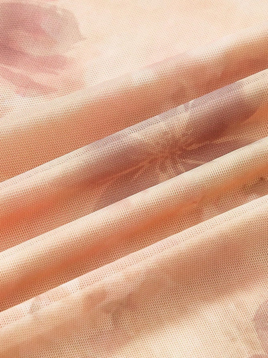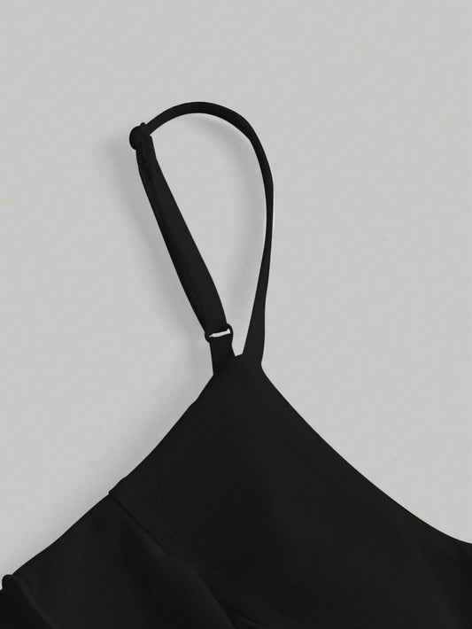 Contrast Mesh Ruffle Asymmetrical Hem Sleeveless Bodycon Cami Dress