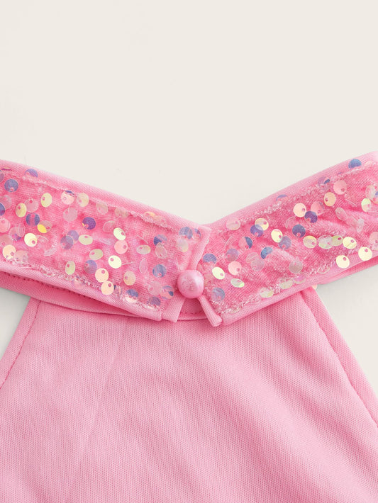 Sequin Halter Neck Glitter Backless Sleeveless Ruched Contrast Bodycon Pencil Mini Dress