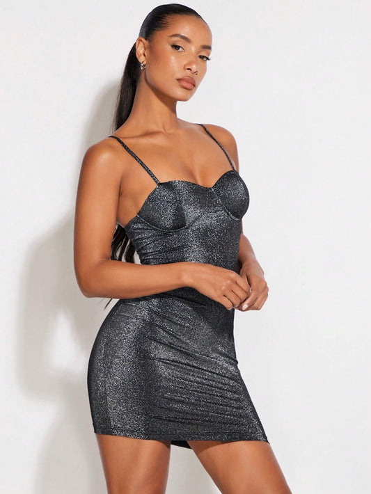 Ruched Sleeveless Glitter Cocktail Club Bodycon Cami Dress